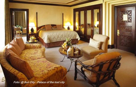 Das Las Vegas Südafrikas, Sun City mit zahlreichen Attraktionen ist vor allem auch für Kinder ein spannendes Ziel und nur 33 km von Johannesburg entfernt. Die Black Rhino Lodge liegt versteckt zwischen Bäumen des Tamboti Waldes am Fuß eines vulkanischen Kraters, der heute eines der 5 interessantesten Eco-Tourismus Ziele Südafrikas beherbergt, den Pilanesberg Nationalpark. Hier können Sie 58 000 ha Malaria freie Natur erkunden und den Zauber des afrikanischen Busches erleben. Die Unterkunft beinhaltet 3 Mahlzeiten pro Tag und 2 Pirschfahrten. Die Suiten sind sehr privat angelegt und mit Minibar, Klimaanlage, Kaffee-und Teekochstation sowie TV ausgestattet.
