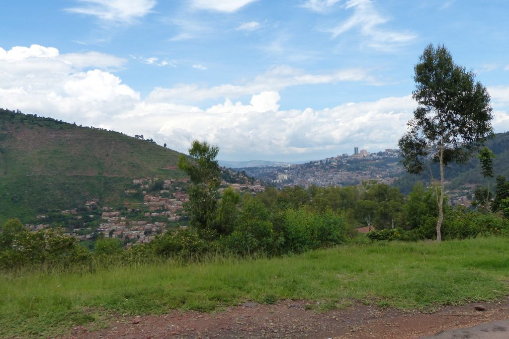 Dorfsiedlung und im Hintergrund Skyline von Kigali